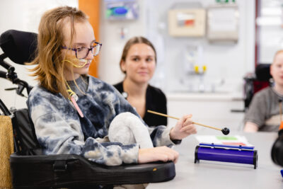 At Mary Free Bed Kids, music therapy is a vibrant, evidence-based therapeutic service that uses music to support children’s emotional, cognitive, social and physical development. Through rhythm, sound and movement, music becomes a powerful tool for expression, connection and healing.